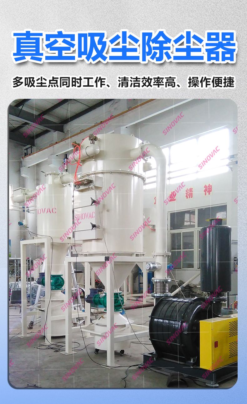 傳統(tǒng)治理手段中,布袋除塵器雖能處理干態(tài)粉塵,但對(duì)粘性粉塵易堵塞濾袋;旋風(fēng)分離器僅適用于大顆粒分離,細(xì)粉逃逸率高;人工清掃則難以應(yīng)對(duì)高空、狹窄區(qū)域的積塵,且易造成二次污染。負(fù)壓吸塵系統(tǒng)通過“負(fù)壓驅(qū)動(dòng)+多級(jí)過濾”的組合設(shè)計(jì),可有效解決上述問題。